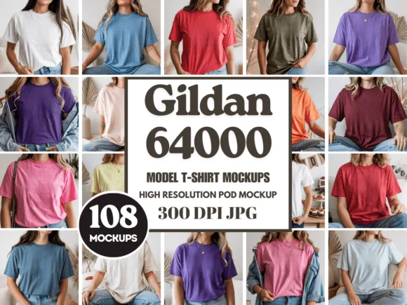 2. Gildan 64000 Model T-Shirt Mockup Bundle – 108 Files
