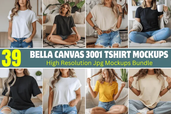 7. Bella Canvas 3001 T-Shirt Mockup Bundle – 39 Files