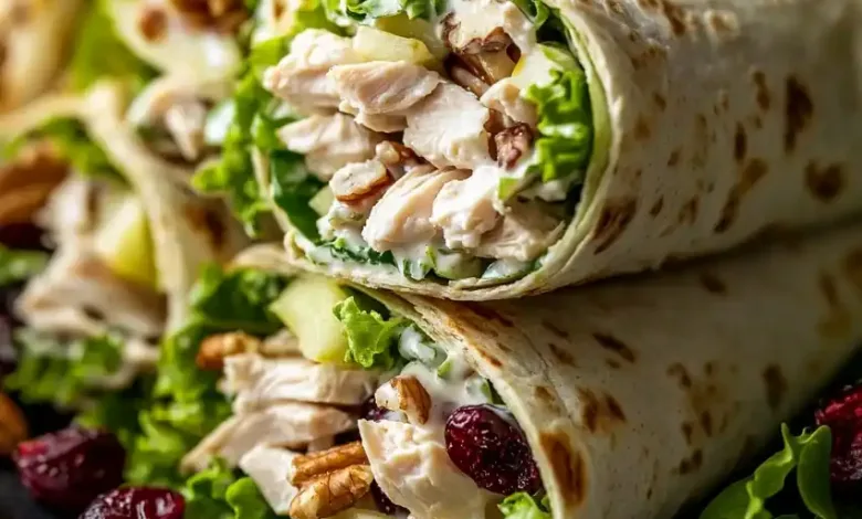 These Hen Apple Salad Wraps mix juicy rooster, crisp apples, crunchy walnuts, and a creamy dressing wrapped in a smooth tortilla.